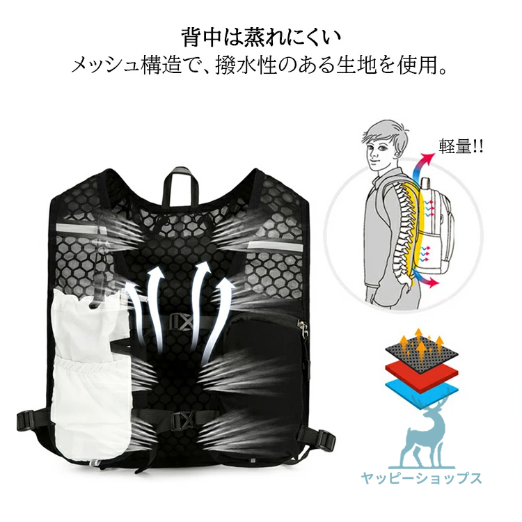 ランニングリュック トレラン ジョギング ザック バッグ サイクリング バック マラソン ベスト ハイドレーション対応 揺れない 反射材 軽量 メンズ レディース