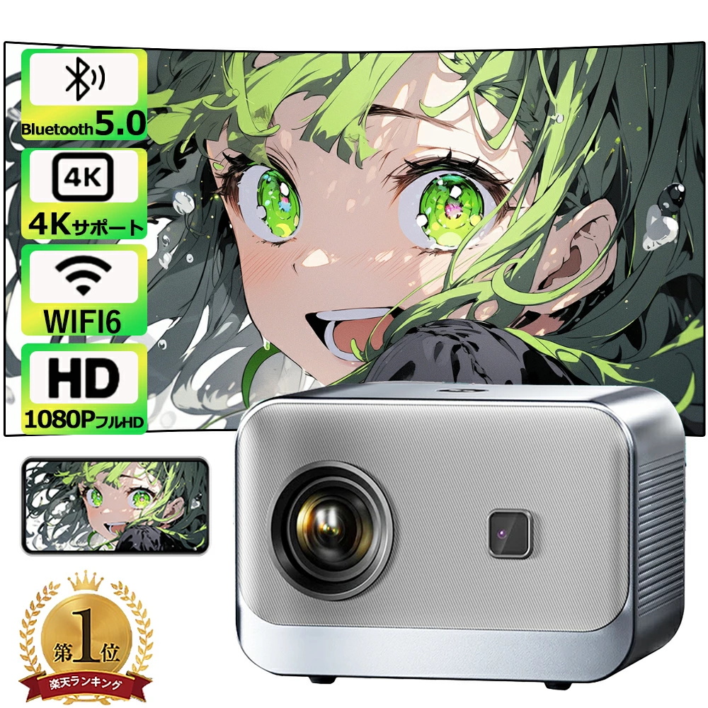 プロジェクター 家庭用 小型 天井投影 Android TV 搭載Netflixが見れるプロジェクター 1080p対応 5G Wi-Fi リモコン付き 高性能 高画質 静音 自動台形補正