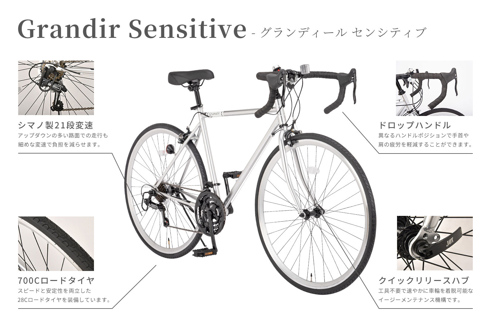 ![ロードバイク Grandir Sensitive (グランディール) 21段変速 700c 自転車 【初心者 おすすめ スタンド付 ドロップハンドル 】 [直送品]](https://shopping.c.yimg.jp/lib/yasaka/18025_byc-85083.jpg)