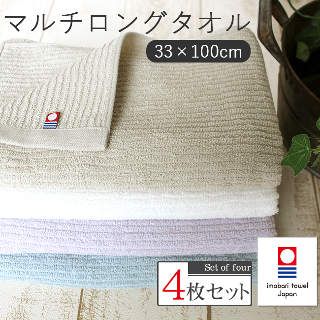 今治タオル バスタオル 小さめ ミニ スリム 4枚セット ロングフェイス ヘアドライ フェイスタオル 長め 100cm 日本製 綿100% 薄手 速乾 部屋干し 白 まとめ買い
