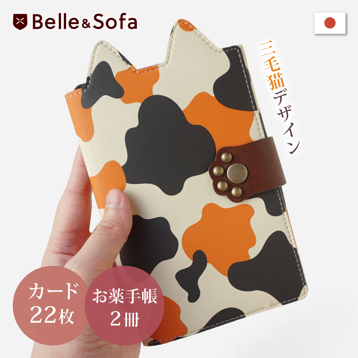 | ●素材:高級人工皮革(本革に近い構造の新素材) ●生産国:日本製 ●サイズ 3つ折りに畳んだ状態(外寸)縦19cm×横12cm 開いた状態(外寸)縦19cm×35.2cm 開いた状態(内寸)縦18.4cm×34.6cm |
