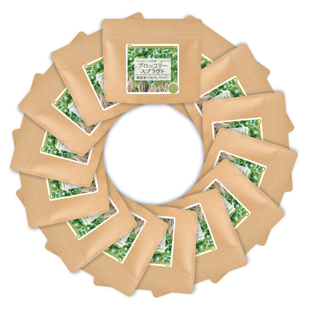 ブロッコリースプラウトとはブロッコリーの新芽です。ブロッコリーと比べて多くのスルフォラファンを含むといわれています。一切の添加物を加えず無添加にこだわった100%パウダーです。
