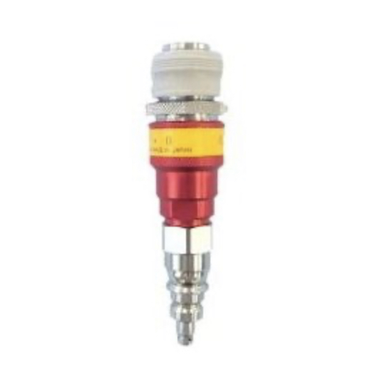 ●建築用高圧エアーから常圧汎用エアーに変換し、常圧エアー工具が使用可能になります<br>●建築高圧コンプレッサーからの高圧空気(2.5MPa以下)を常圧汎用の空気圧に減圧し、常圧エアーツール等の使用が可能になります<br>●常圧側異常圧力時リリーフ機能が働く安全機能付です<br>●小型・軽量ショートタイプです ●重量:約135g ●用途:建築用高圧から汎用常圧へ変換エアレギュレーター<br>●圧力調整範囲:0〜0.86MPa<br>●ソケット:ワンタッチ・ロック・ゴムカバー<br>●安全装置付<br>●最高使用圧力:(一次側入力)2.5MPa<br>●流体:圧縮空気<br>●温度範囲:-10〜45度<br>●色:アルマイトレッド