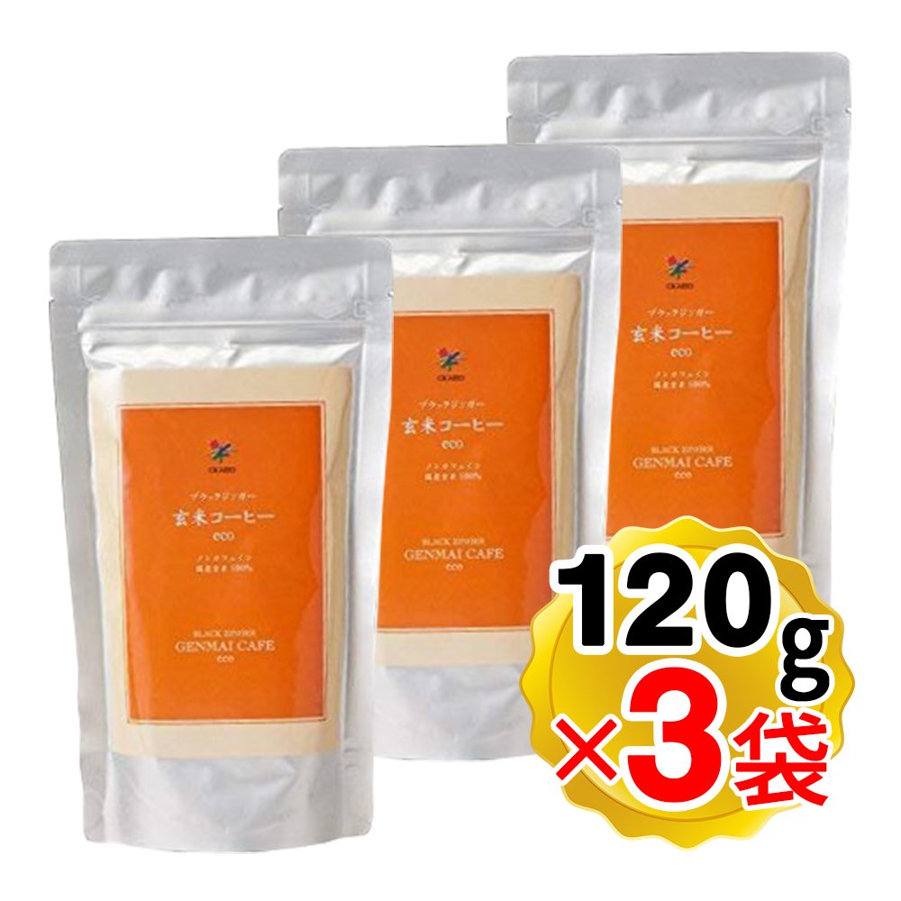 シガリオ ブラックジンガー 玄米コーヒー お徳用 120g×3袋セット(メール便発送) 温活 腸活 妊婦 ノンカフェイン 無添加 玄米珈琲 玄米香琲 玄米粉 焙煎