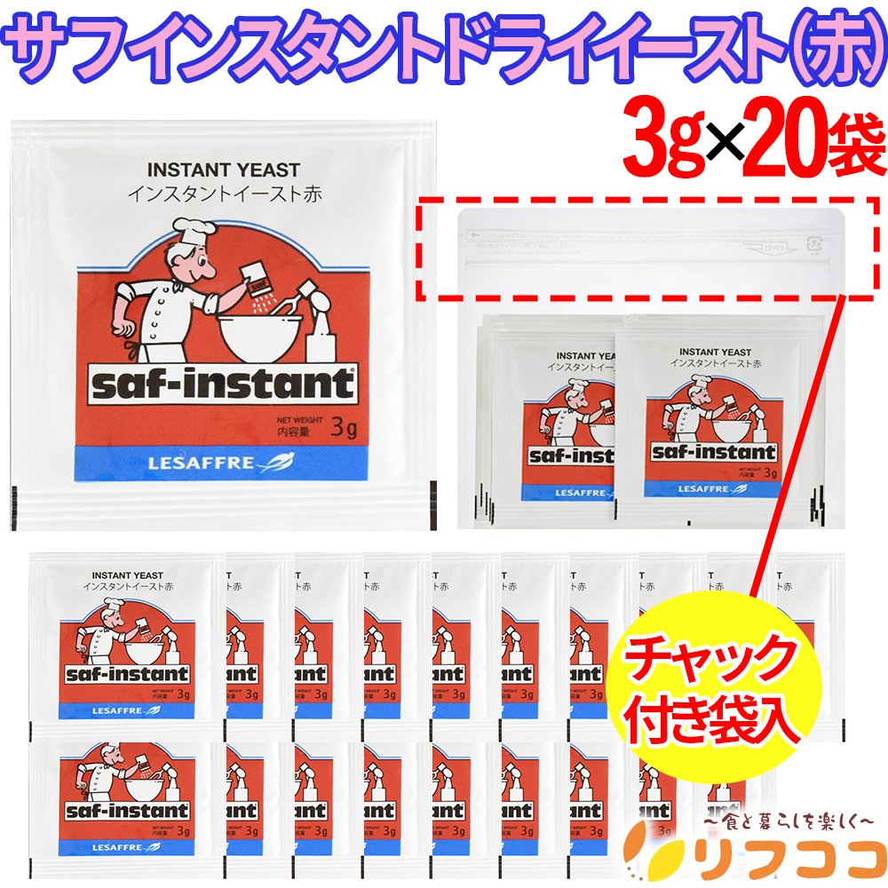(賞味期限2027/8/19以降)サフ インスタント ドライイースト (赤) 3g×20袋 酵母 お菓子作り 乾燥酵母 ルサッフル チャック付袋入(メール便)
