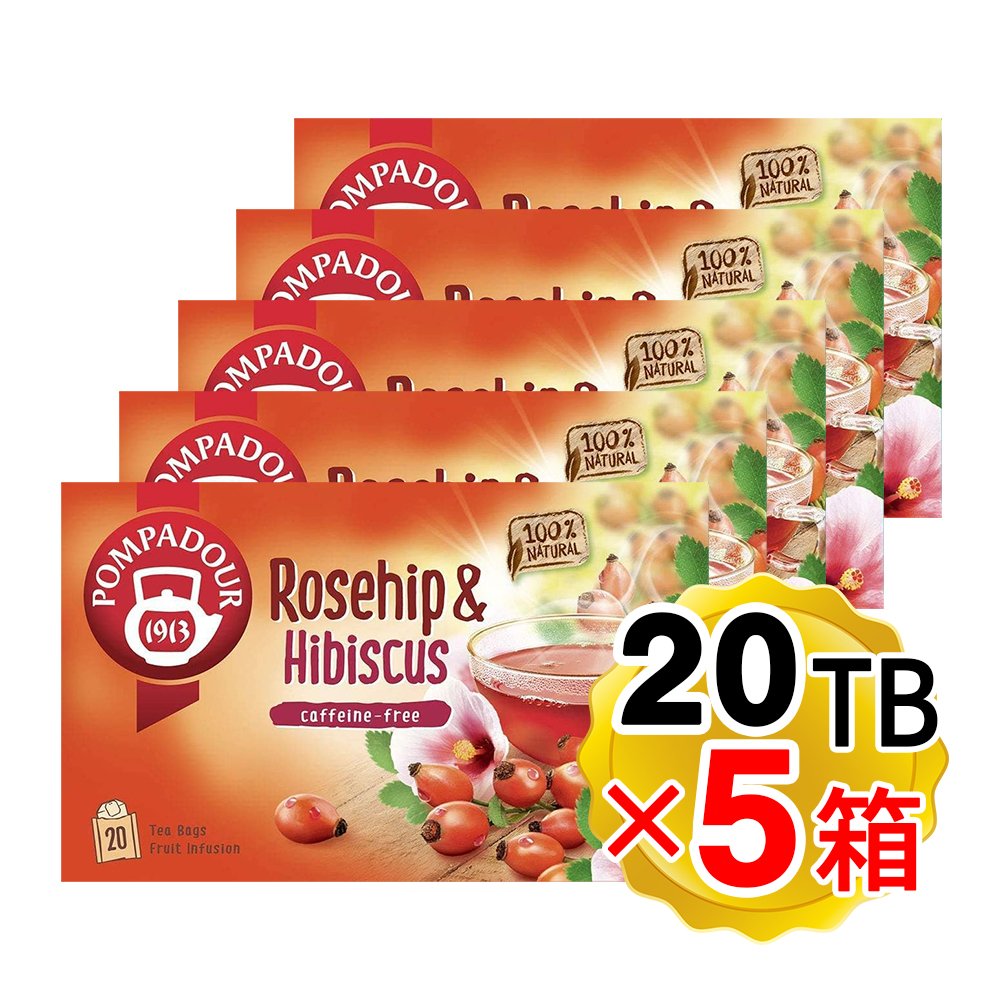 ポンパドール ローズヒップ&ハイビスカスフラワー 1箱(3.5gx20TB入り)×5箱セット ドイツ産 ハーブティー ノンカフェイン カフェインレス POMPADOUR