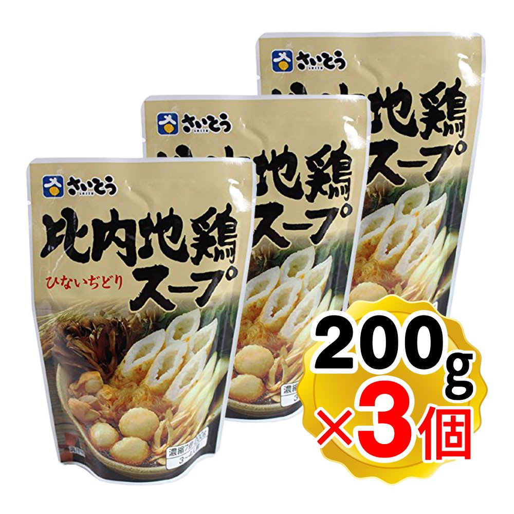 斎藤昭一商店 比内地鶏スープ 200gx3個セット スタンドパック 秋田の比内地鶏使用 きりたんぽ鍋 スープ うどん そば 煮物(メール便発送・追跡番号有り)