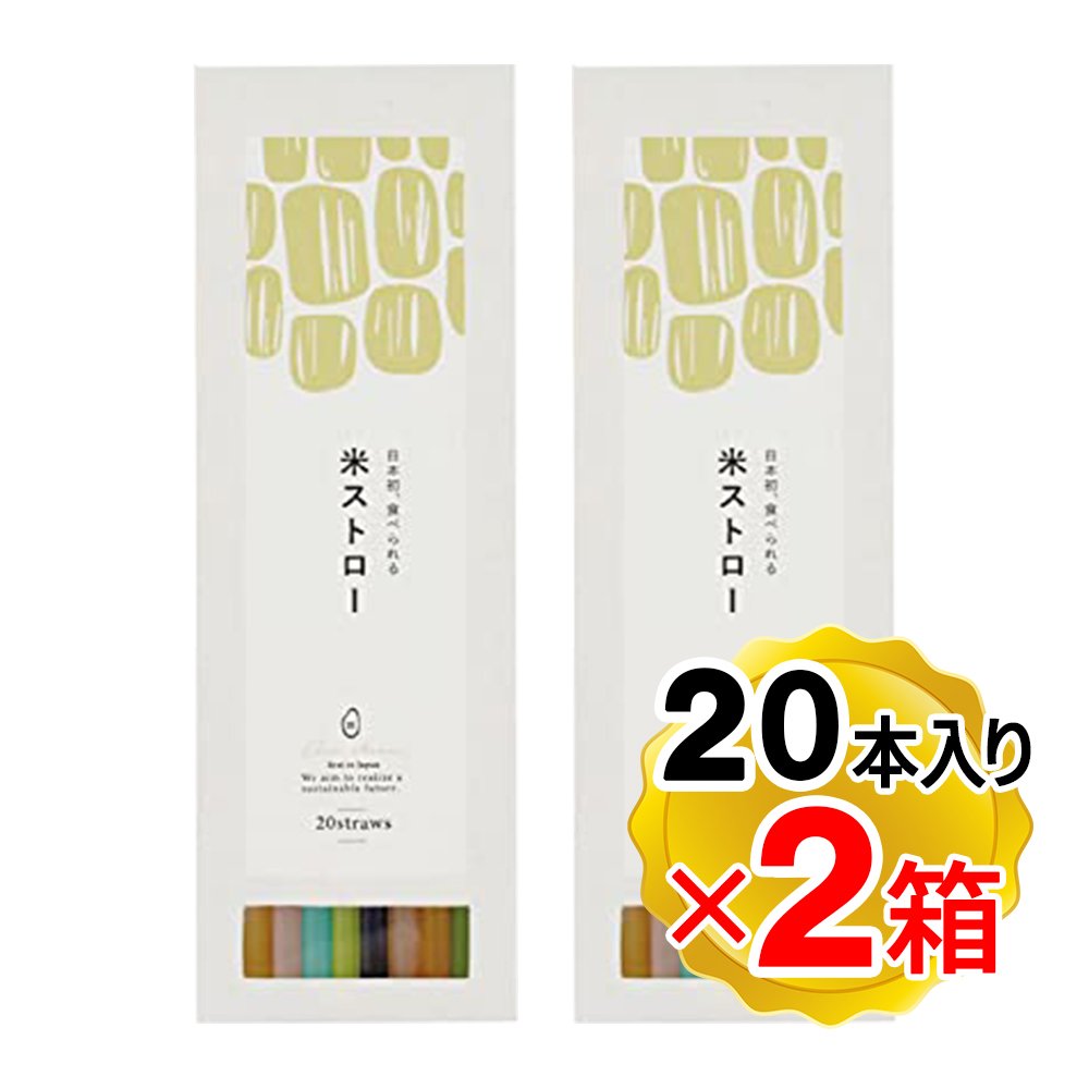 米ストロー 1箱(20本入り)×2箱セット 計40本 脱プラ お米で作ったストロー 食べられるストロー コーンスターチ エコ(メール便発送)