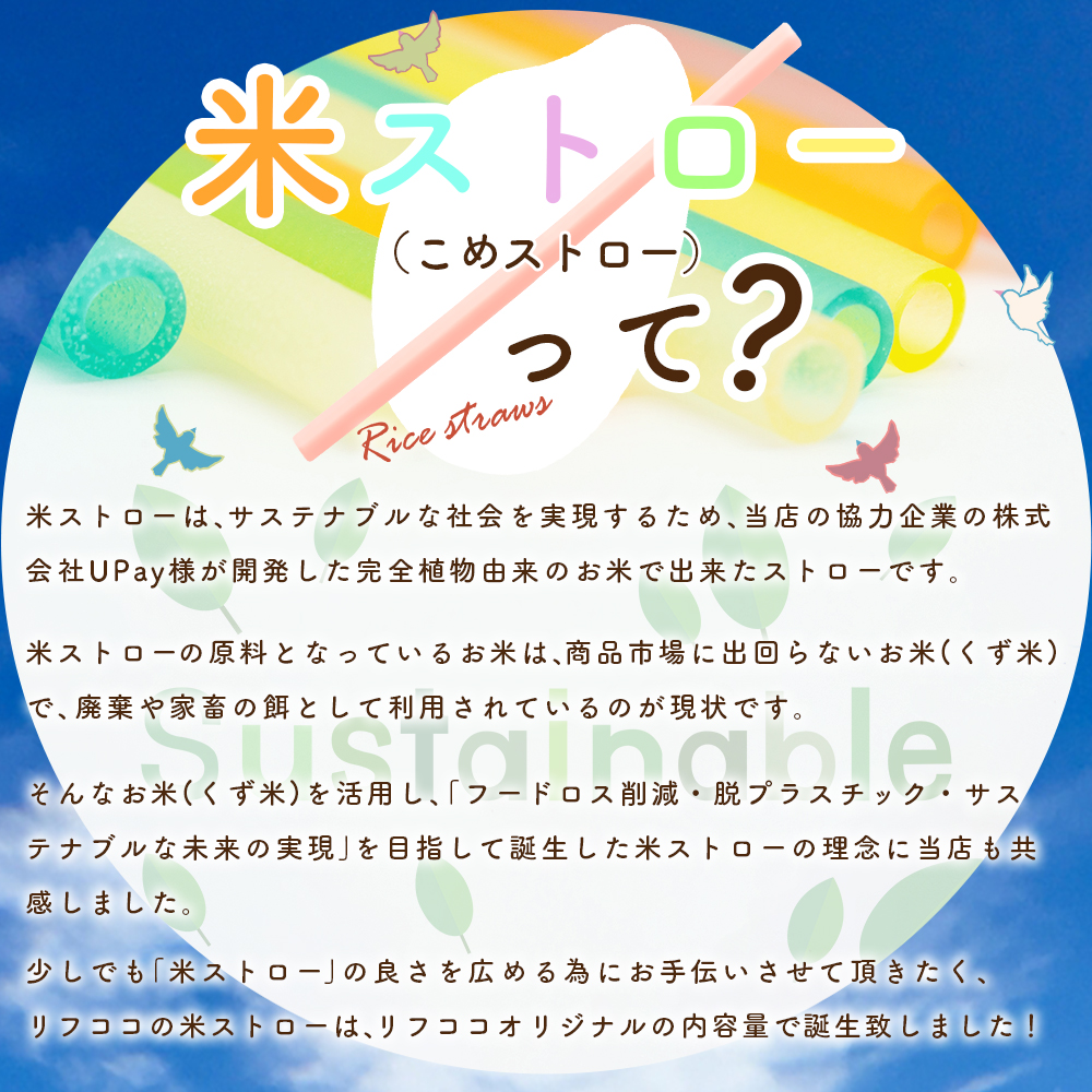 リフココ 米ストロー 大容量 1箱 100本入 5色カラー (メール便/レターパック発送) お米とコーンスターチで出来た食べられるストロー 添加物不使用