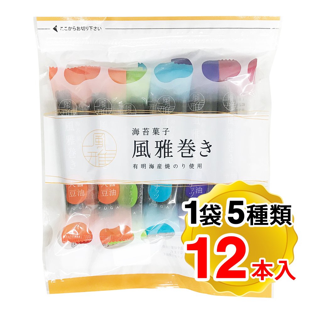 風雅 海苔菓子 風雅巻き 1袋5種類 12本ミックスパック お菓子 お土産 巻き詰合せ 熊本