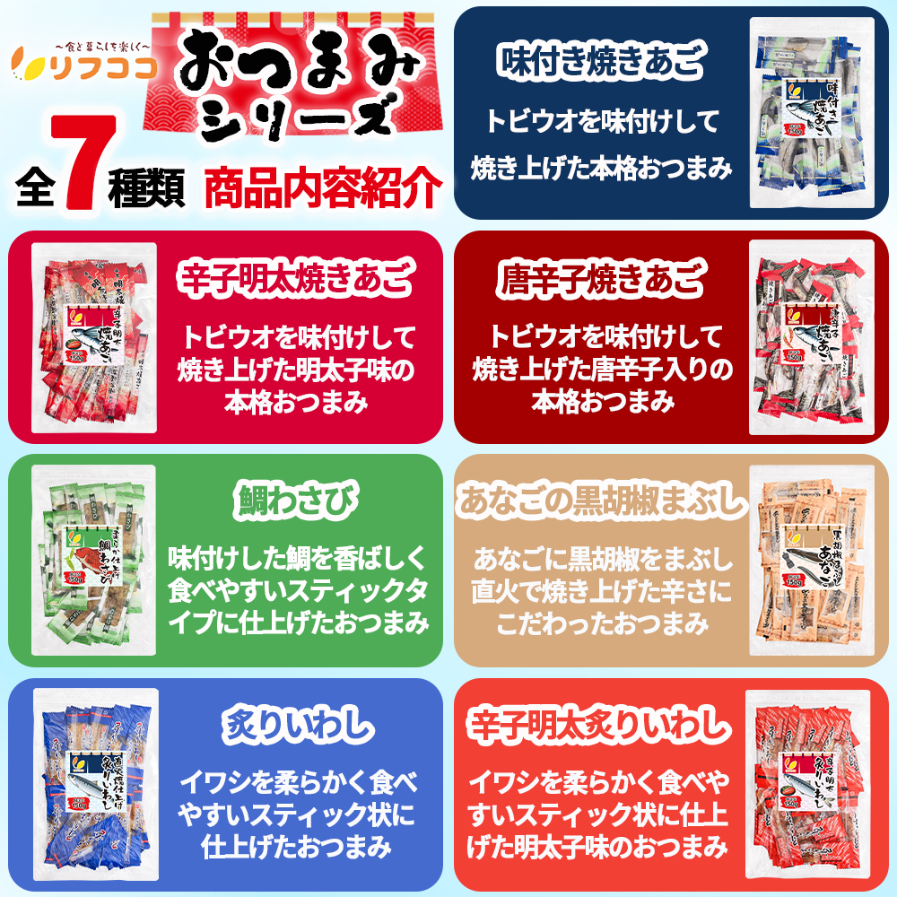●リフココ「いつでもどこでもおつまみシリーズ」の「味付き焼きあご」です。
