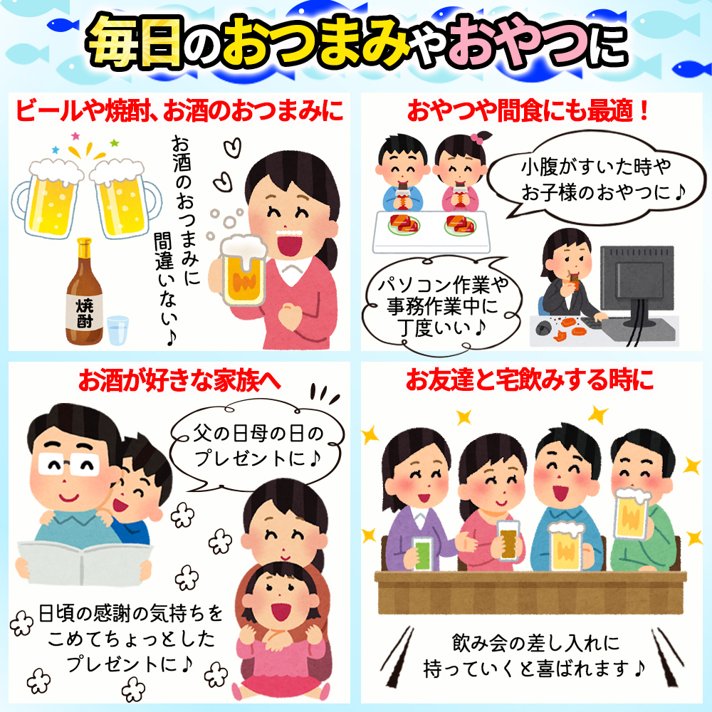 ●パーティーのおつまみや、飲み会、イベント、旅行のおやつにどうぞ。