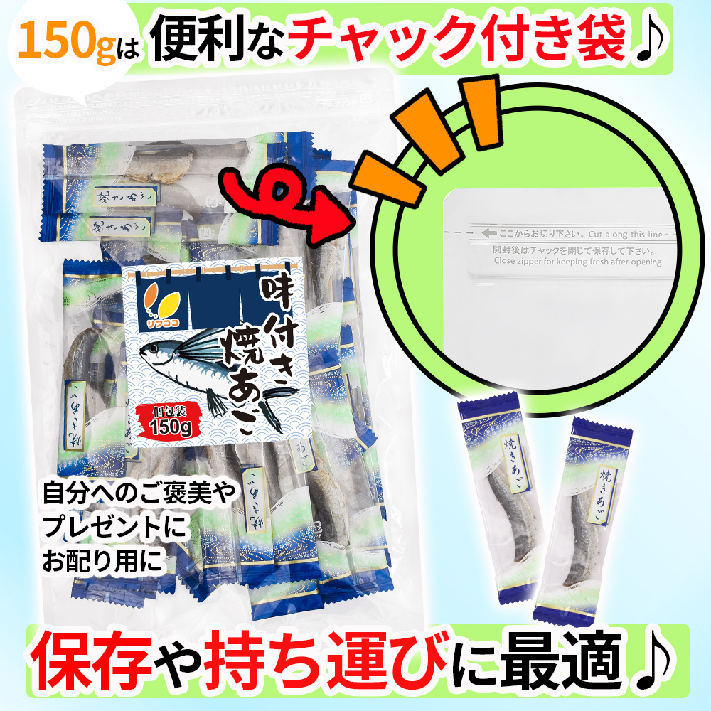リフココ おつまみシリーズ 味付き焼きあご 個包装 150g チャック付き袋入り ピロ業務用 おつまみ 酒のつまみ 珍味 つまみ 焼きあご