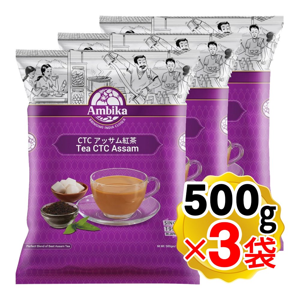 アンビカ CTC アッサムティー(スモール)500g×3袋セット マサラチャイ アッサム アッサムCTC アッサム紅茶 インスタント チャイスパイス Ambika インド産
