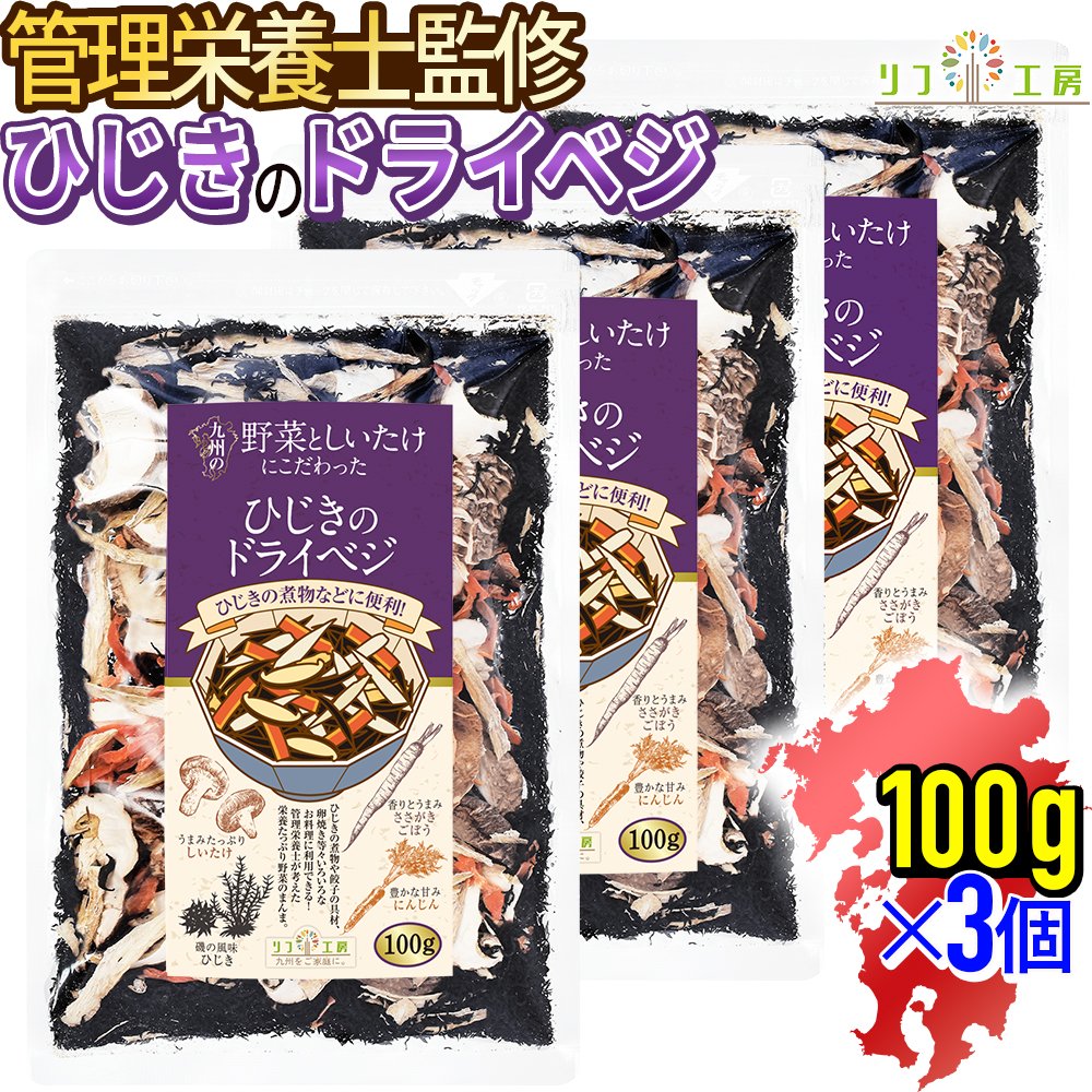 管理栄養士監修 国産 乾燥野菜 リフ工房 九州の野菜としいたけにこだわった ひじきのドライベジ 100g×3個セット 原木しいたけ ひじき ささがきごぼう 人参