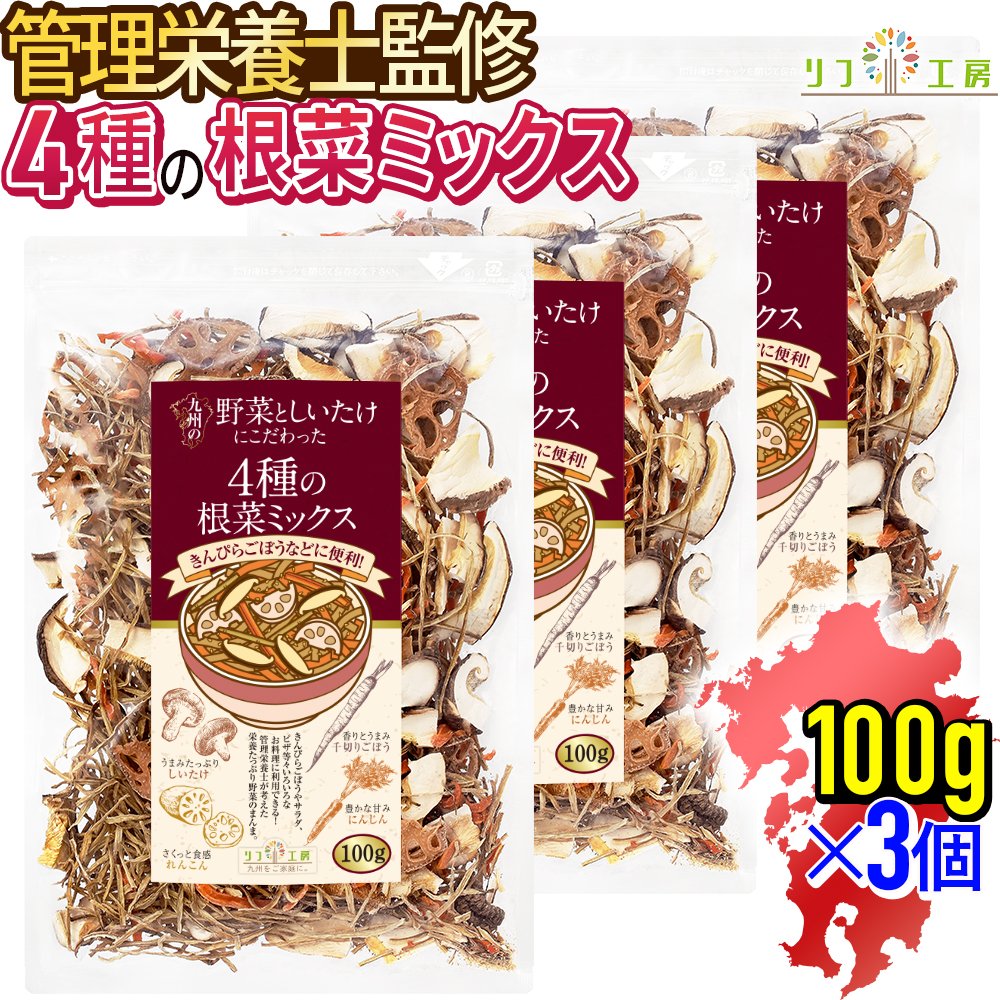 管理栄養士監修 国産 乾燥野菜 九州の野菜としいたけにこだわった 4種の根菜ミックス 100g×3袋セット 味噌汁の具 野菜スープ エアーズドライ 乾燥野菜 国産