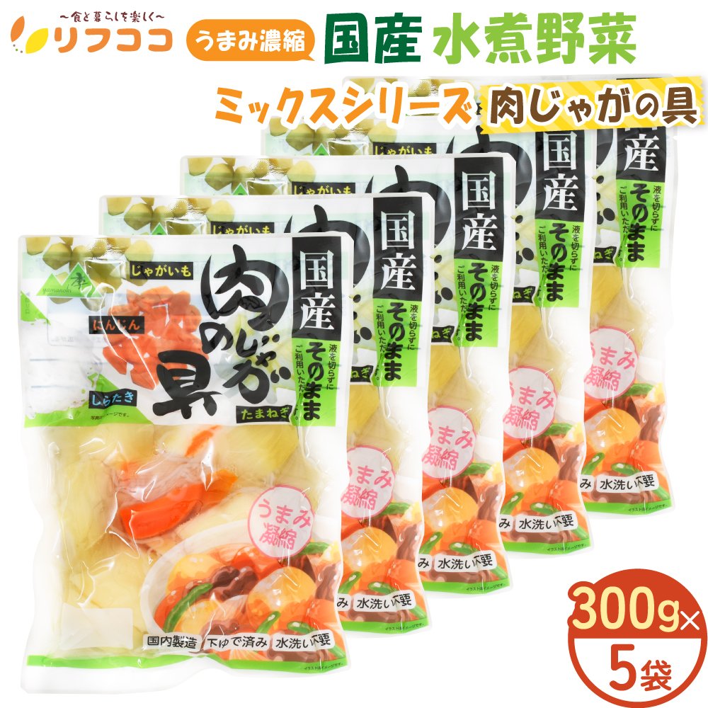 うまみ濃縮 国産 水煮野菜 肉じゃがの具(じゃがいも 玉ねぎ にんじん こんにゃく)300g×5個セット 国産野菜100%使用 下茹で野菜 カット野菜 pH調整剤不使用