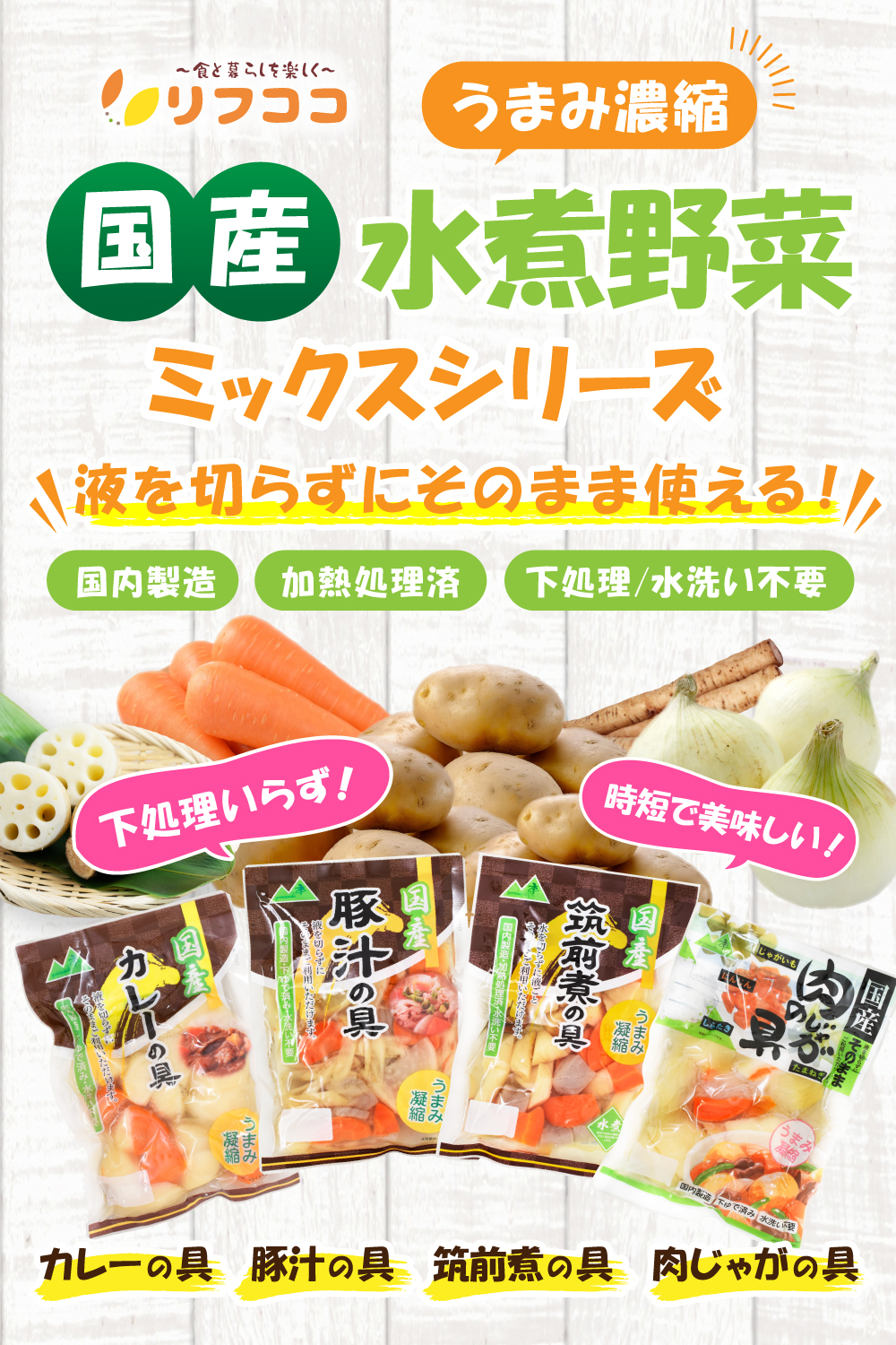 【うまみ濃縮 国産 水煮野菜シリーズ カレーの具/豚汁の具/筑前煮/肉じゃがの具】