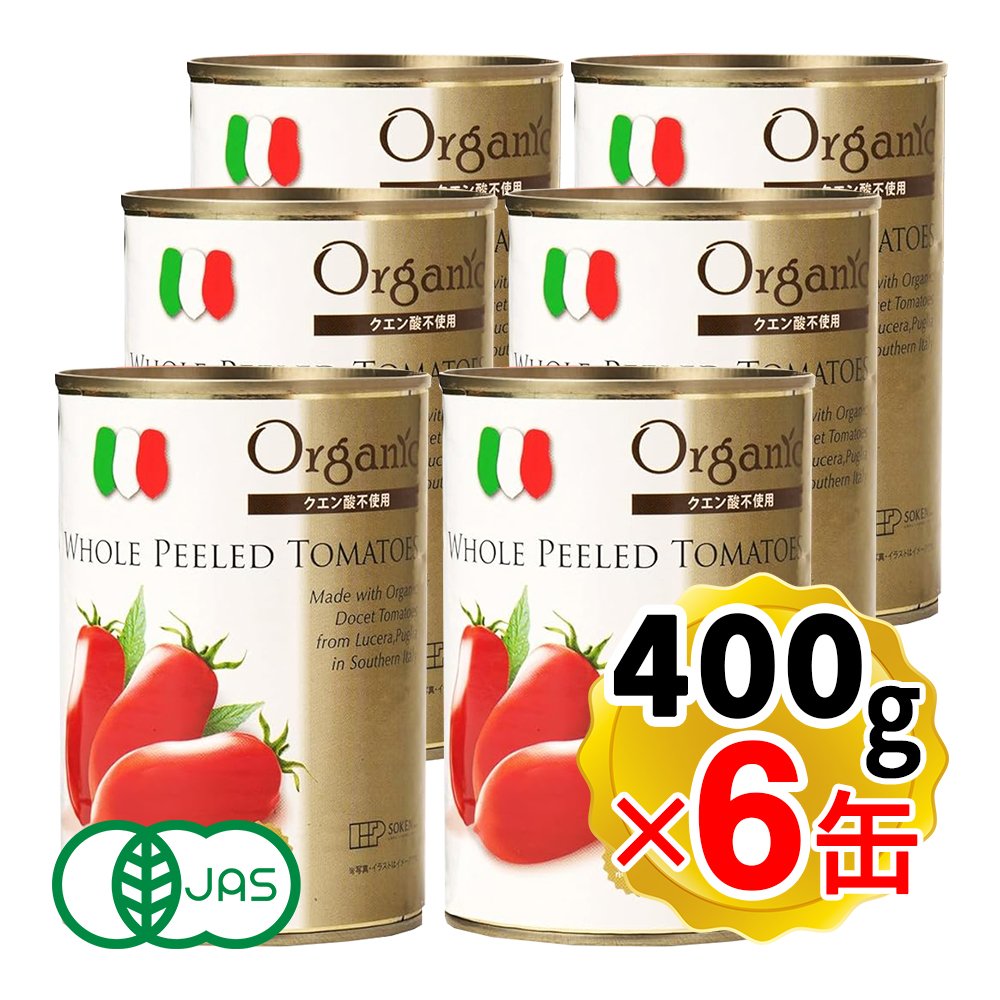 創健社 有機ホールトマト 缶詰め 400g(固形量 240g)×6缶セット イタリア産 クエン酸不使用 オーガニック 有機 トマト 有機JAS認定