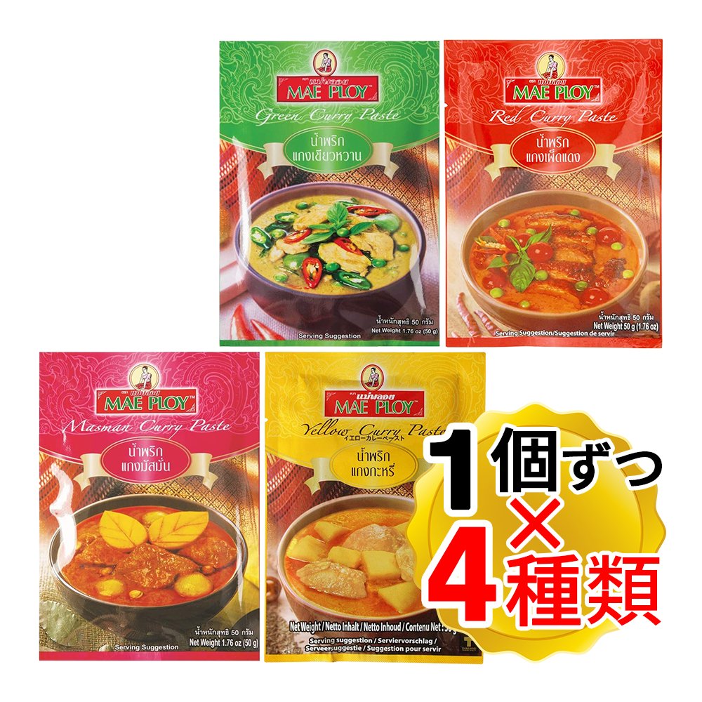 メープロイ タイカレーペースト 4種 各1個(50g) 計4個セット グリーンカレー レッドカレー マッサマン イエローカレー タイカレー MAE PLOY(メール便)