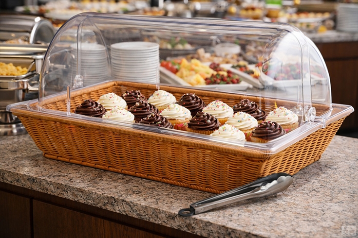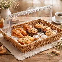 ベーカリーバスケット 籐バスケット カバー付き ディスプレイ かご パンかご ラタンバスケット フードケース 蓋付き フタ付き 浅型 角型 業務用 店舗 パン屋さん