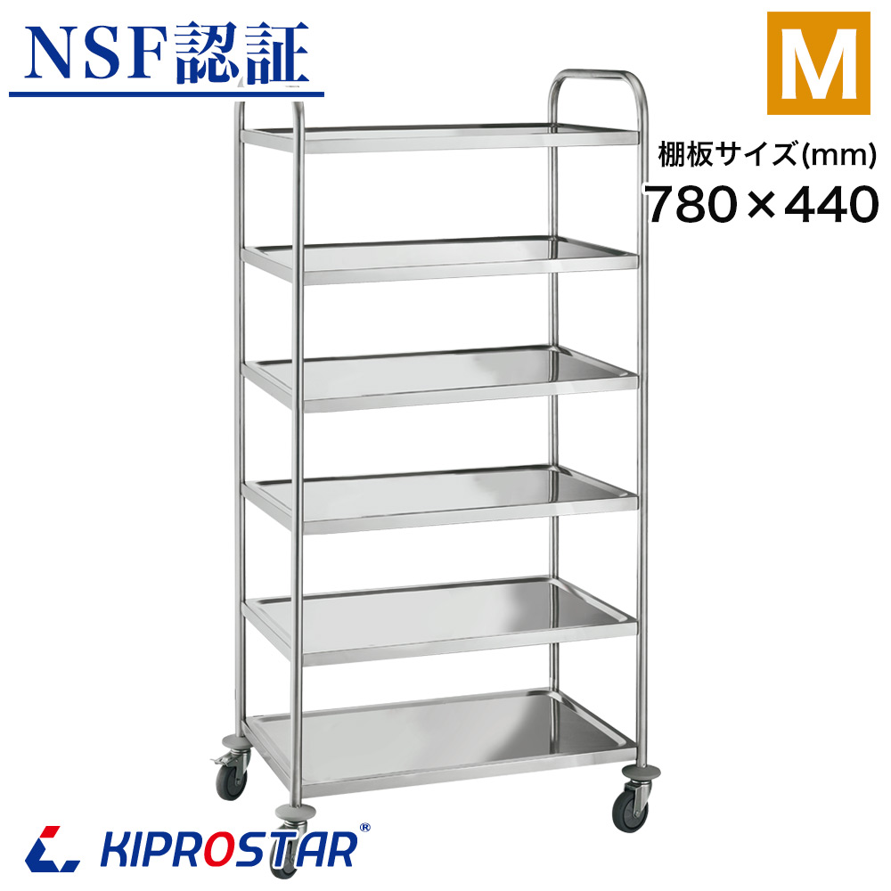 ステンレスワゴン 6段 棚板780×440 キャスター付き サービスワゴン ツールカート PRO-M6 厨房ワゴン キッチンカート 業務用 作業台 配膳車 配膳ワゴン