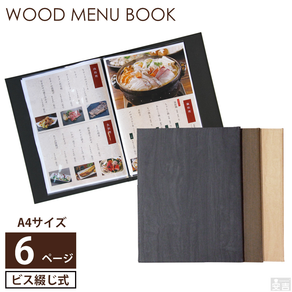 【送料無料】メニューブック ハードカバー 木目調 6ページ(3枚6面) A4【メール便】メニュー カバー ファイル A4 A4サイズ 洋風 和風 カフェ