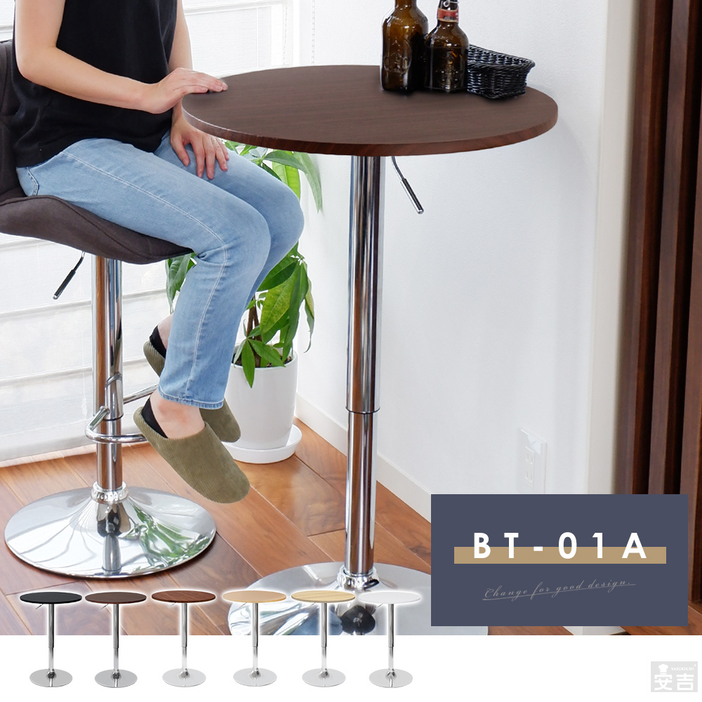 バーテーブル カウンターテーブル 幅60cm 昇降式 丸型 カフェテーブル 机 テーブル ハイテーブル 丸 おしゃれ コーヒーテーブル 60 高さ調整可能 BT-01A