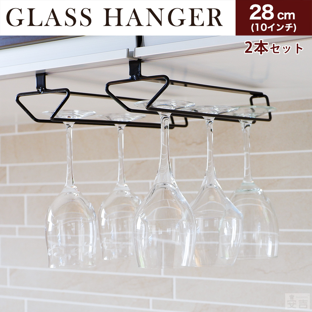 【2本セット】ワイングラスグラスハンガー グラスホルダー 選べる3色(黒・白・銀) 差し込み式 (28cm TGH-10 )
