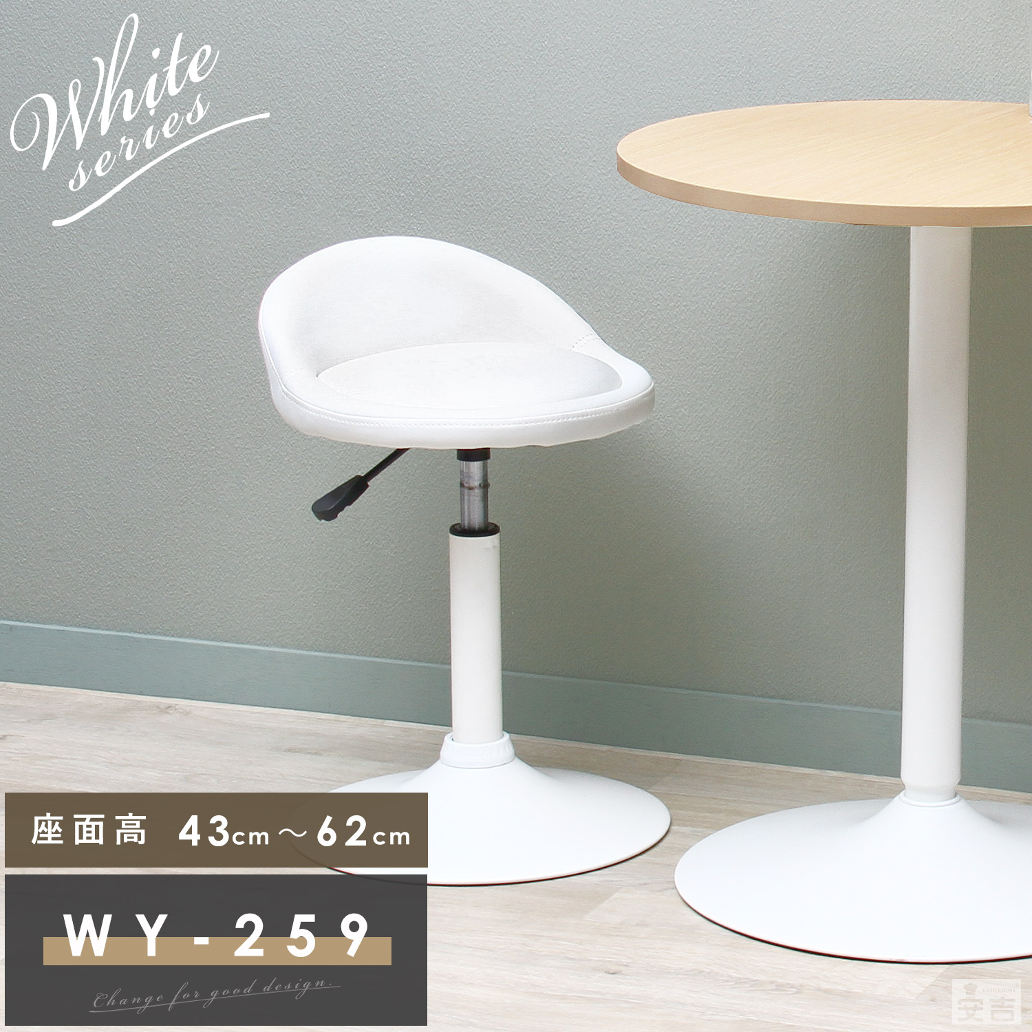 カウンターチェア ロータイプ WY-259S 白脚タイプ ダイニングチェア バーチェア 椅子 昇降式 ローチェア 低い 低め カウンターチェア低め スツール 高さ調整