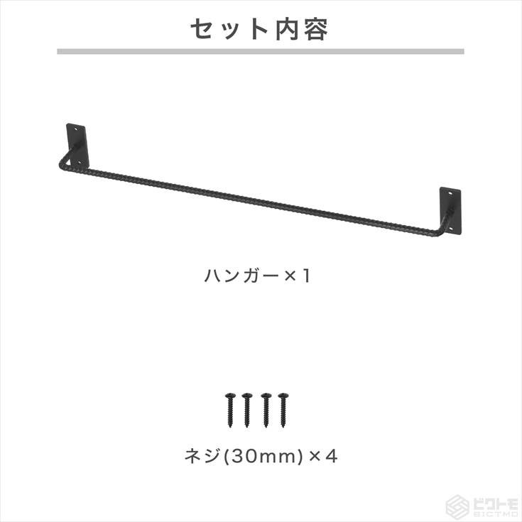 タオルハンガー 幅60cm 洋服掛け ハンガーバー 傘掛け ウォールバー タオルバー 壁付け 鉄筋 おしゃれ ハンガーフック ガレージ 洗面所 トイレ ビクトモ BICTMO