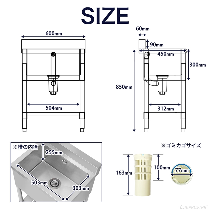 【槽寸法(mm)】幅503×奥行303×深さ255