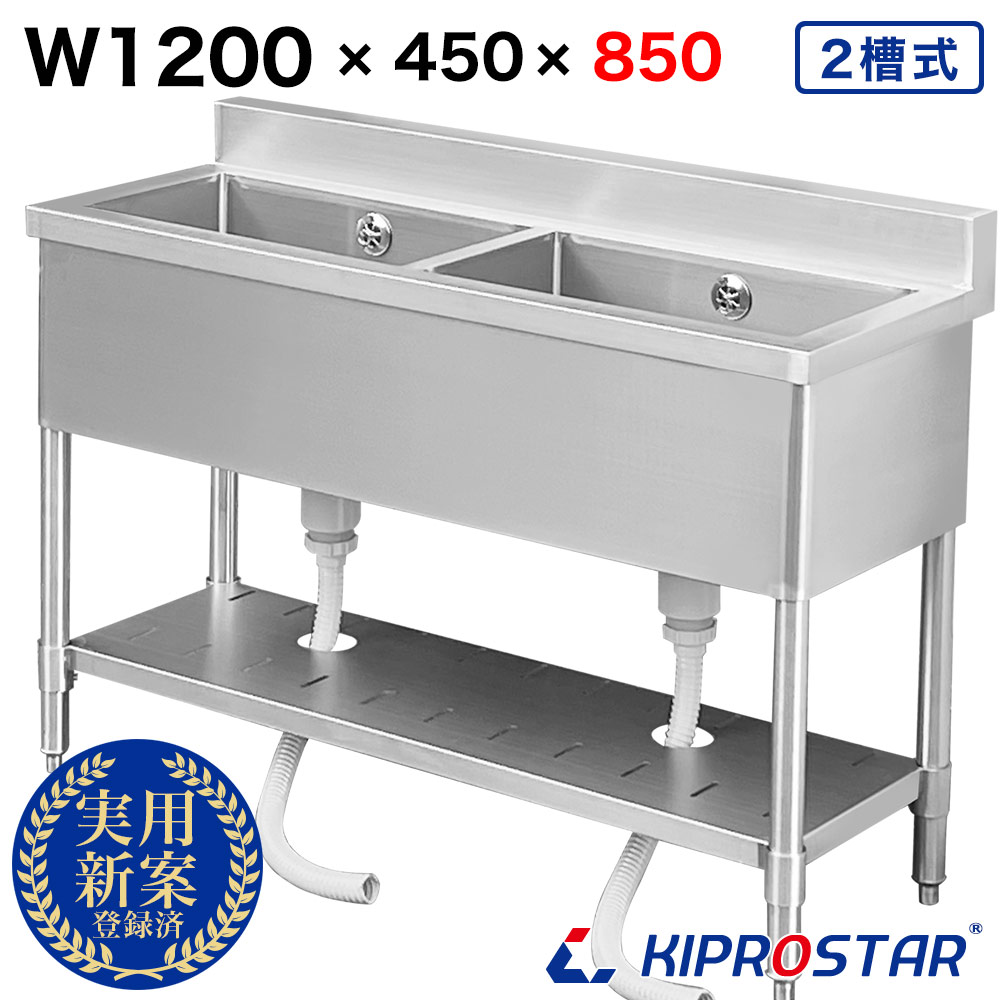 業務用 シンク 2槽 ステンレス 流し台 1200×450×高さ850 1200-450 (業務用シンク キッチンシンク ガーデンシンク 厨房)