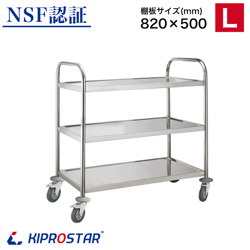 キッチンワゴン 3段 棚板820×500 キャスター付き 作業台 配膳車 調理台 業務用 キッチン収納 ステンレス ワゴン 配膳カート PRO-L3