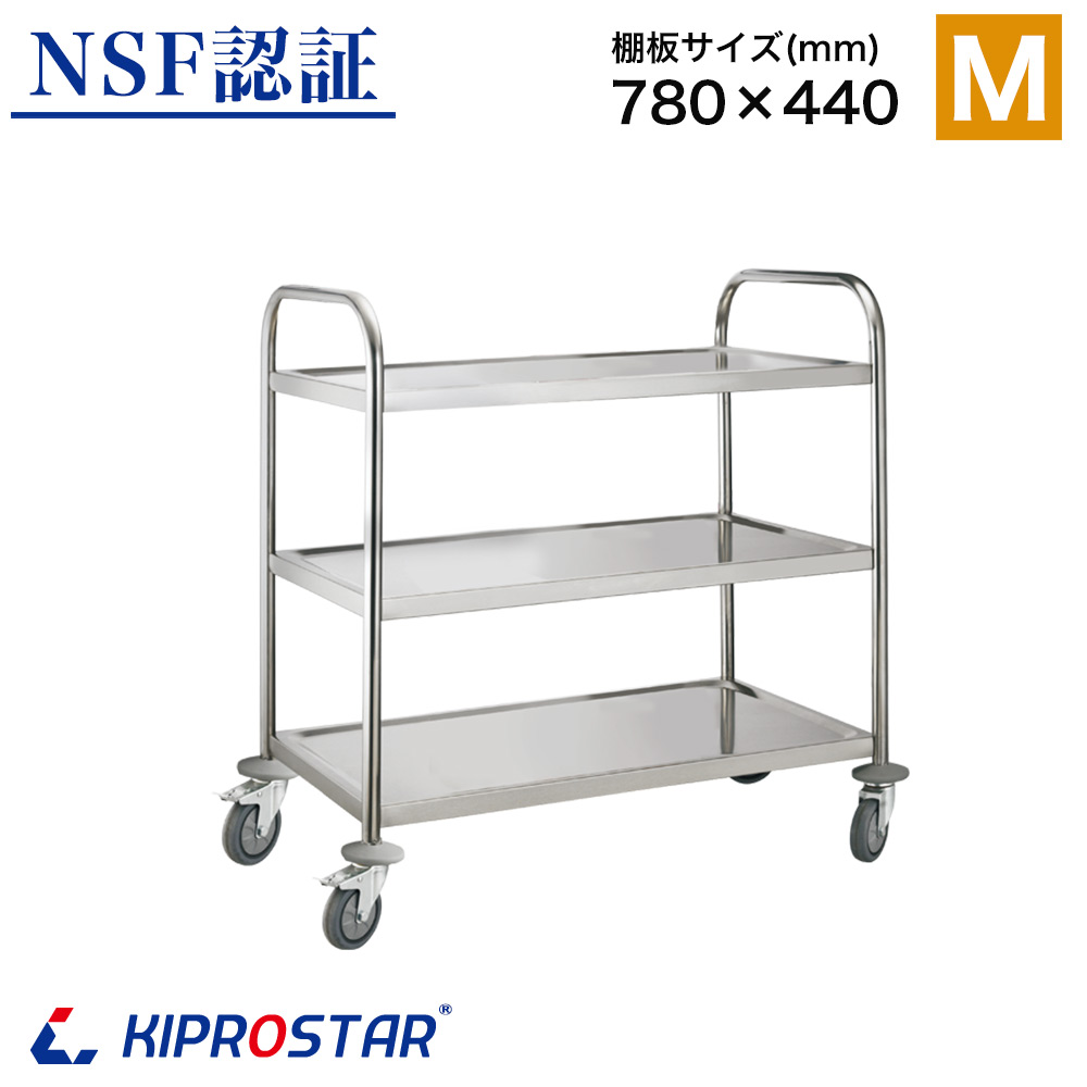 キッチンワゴン 3段 棚板780×440 キャスター付き 作業台 配膳車 調理台 業務用 収納 ステンレス サービスワゴン カート PRO-M3 配膳ワゴン