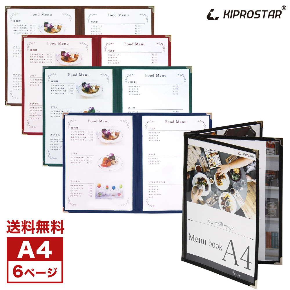 【送料無料】NEW メニューブック カバー 中綴じ 6ページ(3枚6面) A4対応 A4 メニューファイル テーピング 店舗用【メール便】
