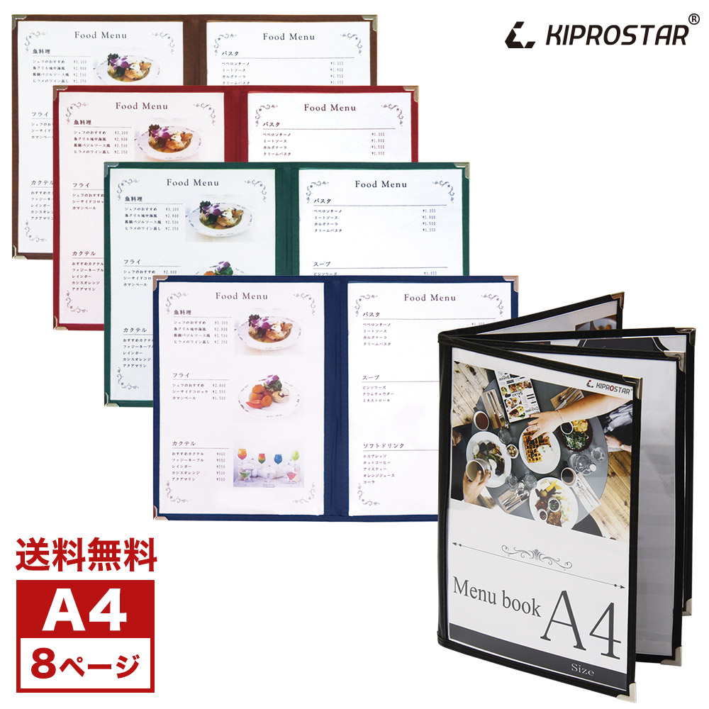 【送料無料】NEW メニューブック カバー 中綴じ 8ページ(4枚8面) A4対応 A4 メニューファイル テーピング 店舗用【メール便】