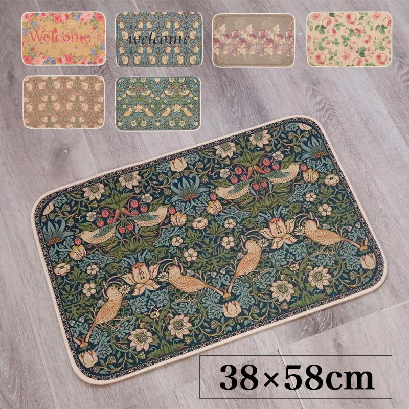 玄関マット 屋外 エントランスマット S 38×58 泥落とし おしゃれ ローズ フラワー バード&ストロベリー 滑り止め加工 長方形