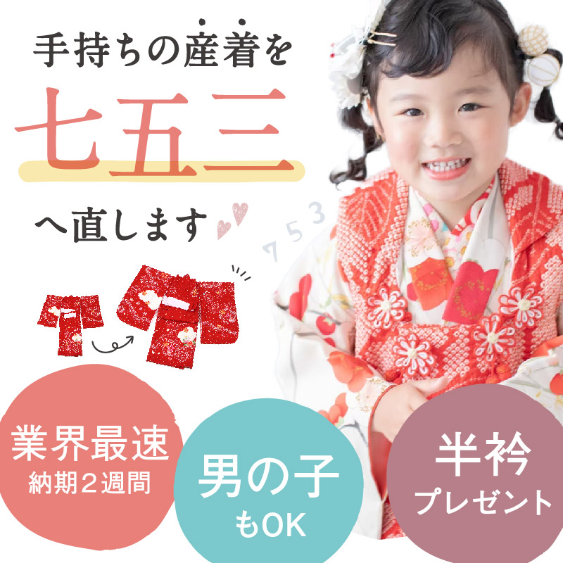 七五三 着物 お直し 業界最速! 七五三 3歳用 掛け着お直し 初着お直し 肩上げ 身丈上げ 袖丸み 女の子 3才 女児 足袋 お仕立て直し 産着 お宮参り 掛着