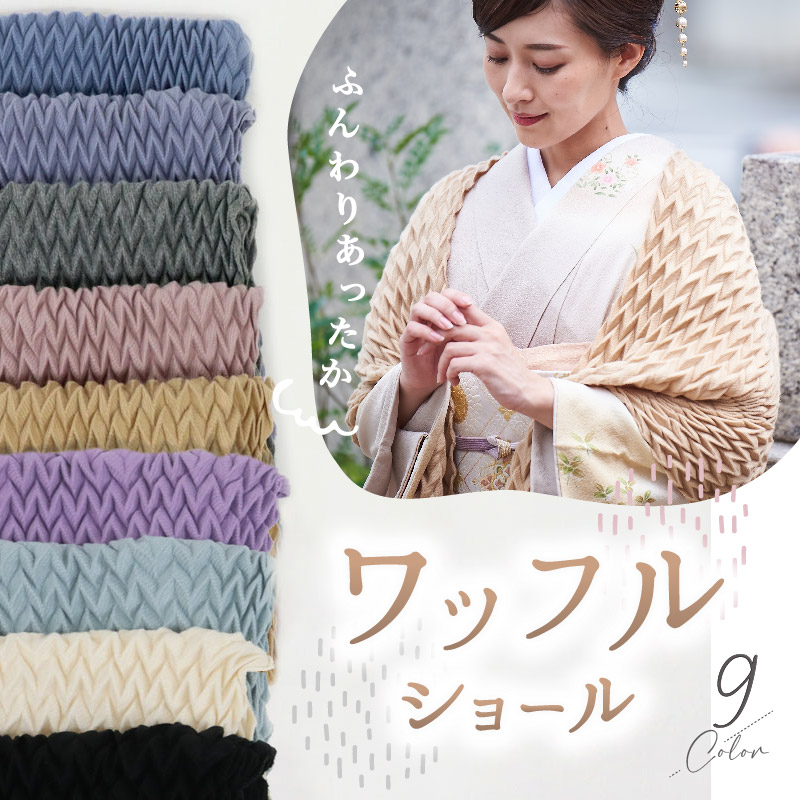 ワッフルショール 全10色 大判 ショール ストール 中国製 ヘリンボーン プリーツ 和装 着物 羽織 着物コート 和装小物 プレゼント