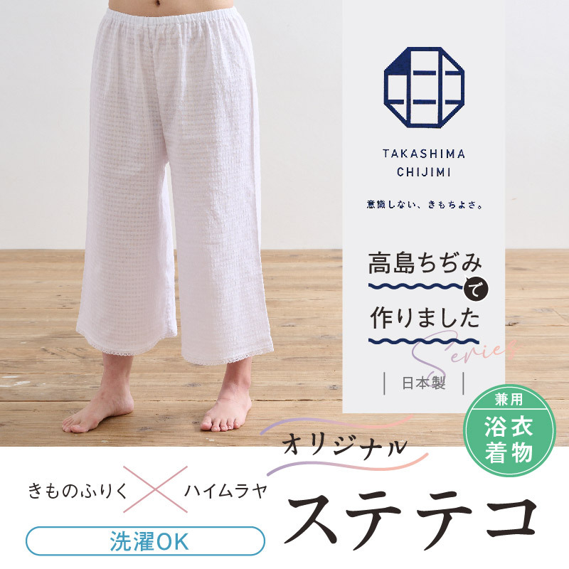 オリジナル商品*高島ちぢみ ステテコ 白 M L LL 着物・浴衣兼用 パンツ型 裾除け 夏向け ホワイト きもの下 ゆかた下 肌着 和装 着物 浴衣 和装小物