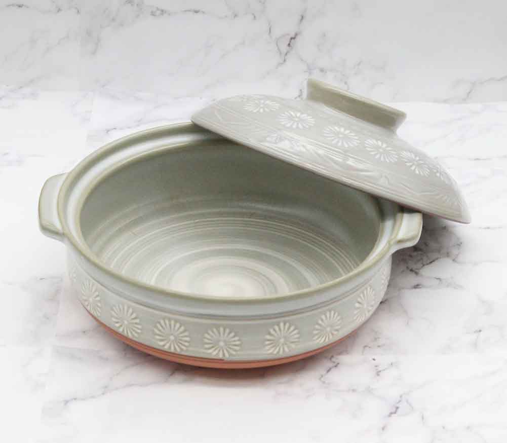 ・陶器の風合いと遠赤外線の効果を生かすために、土鍋の表面にはコーティングなどの処理は行っておりません。この為、調理中の火力及び具材のかき回しなどに気を付けてください。