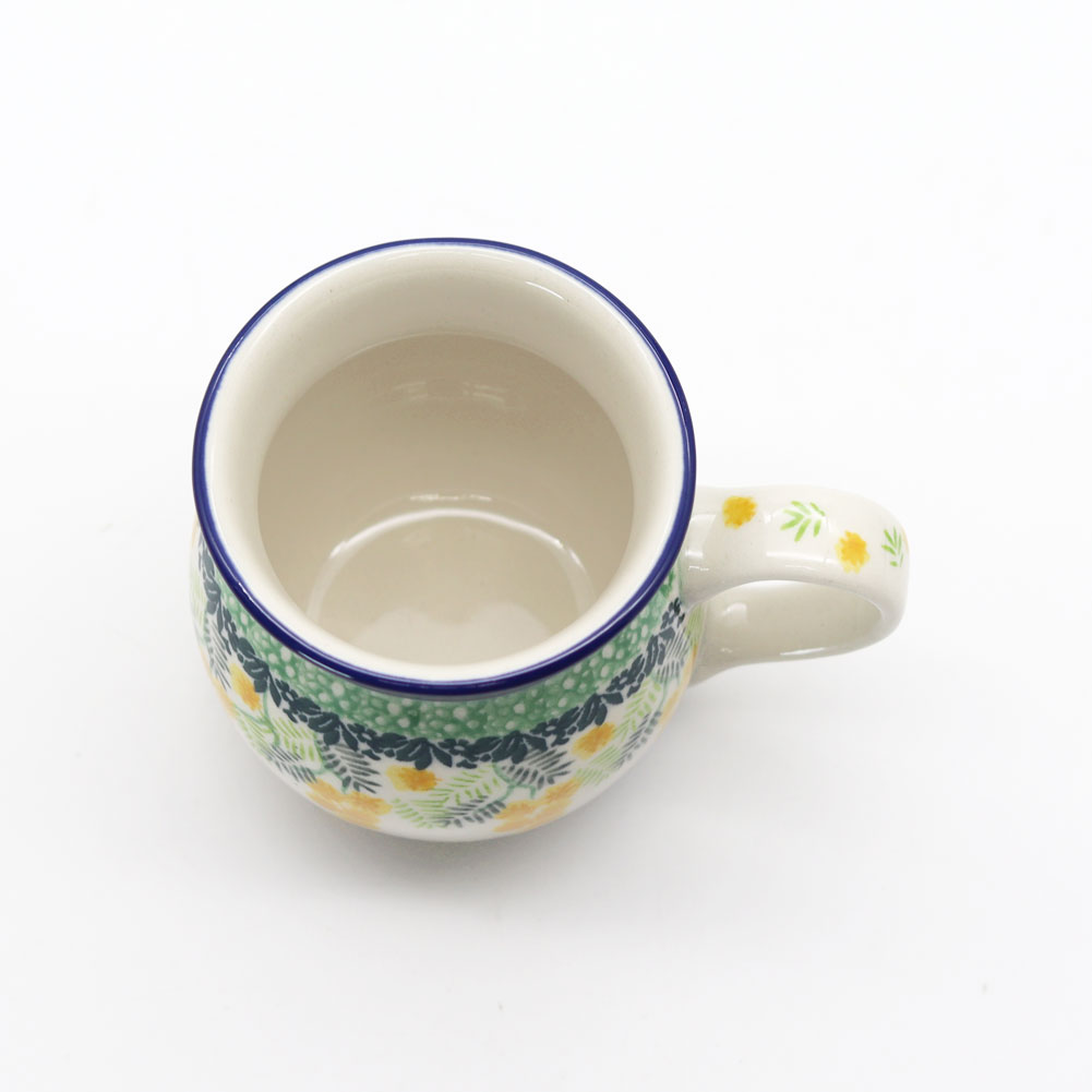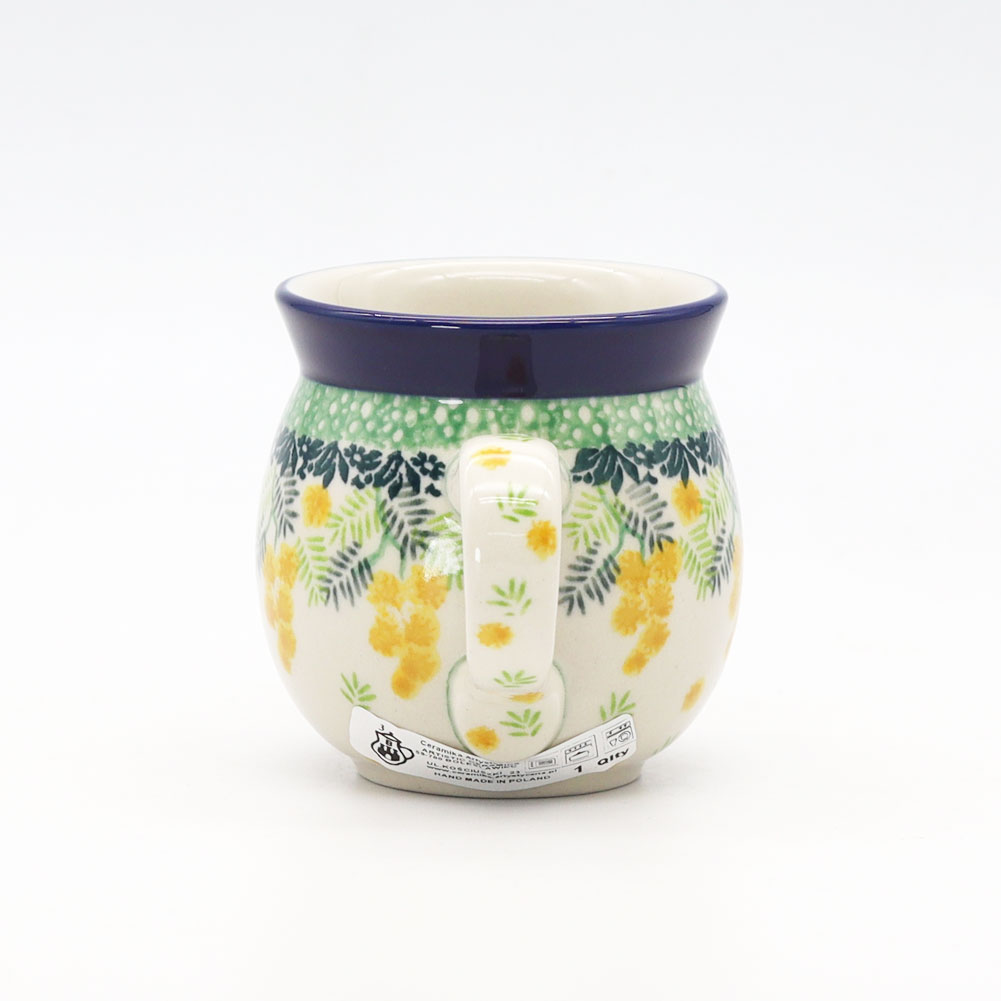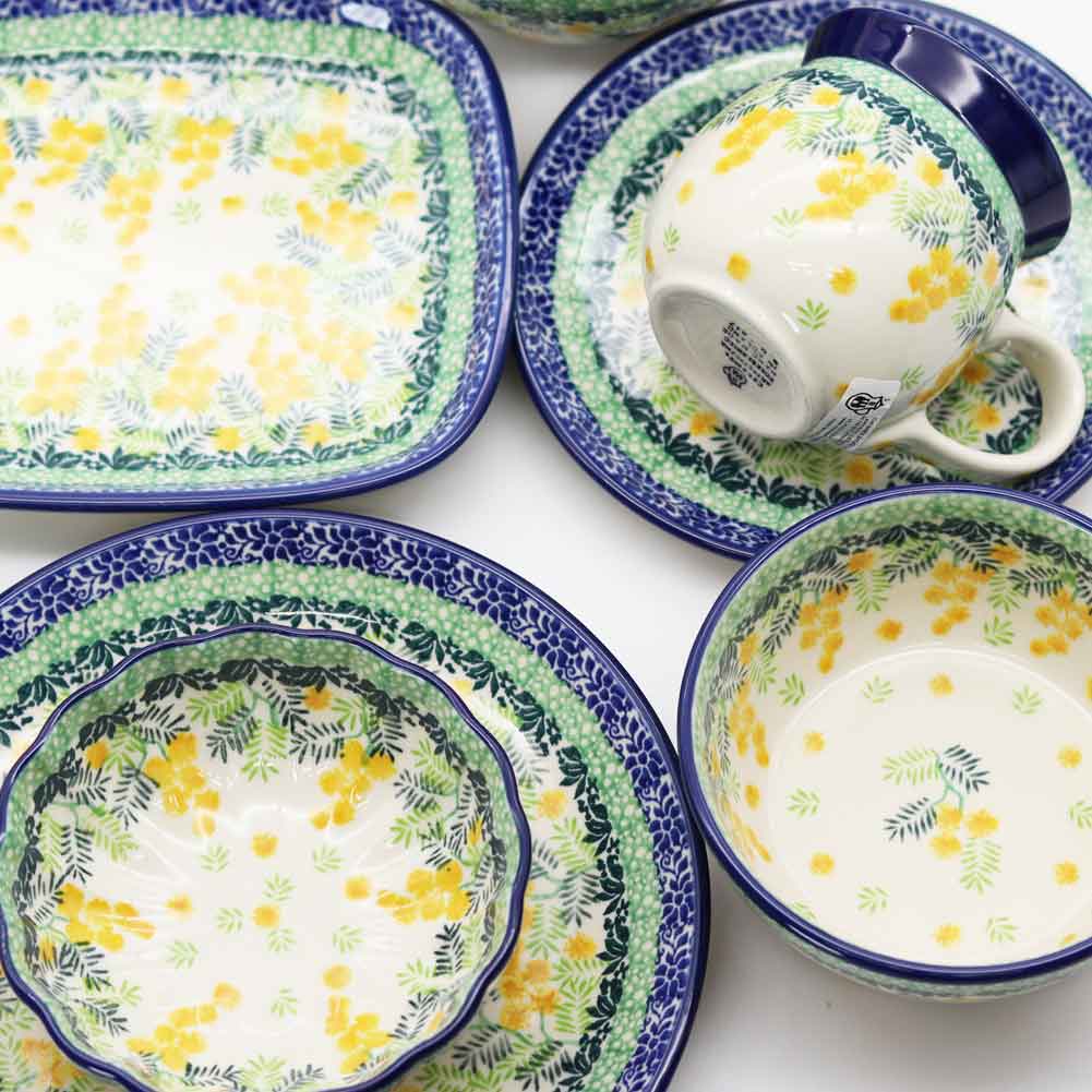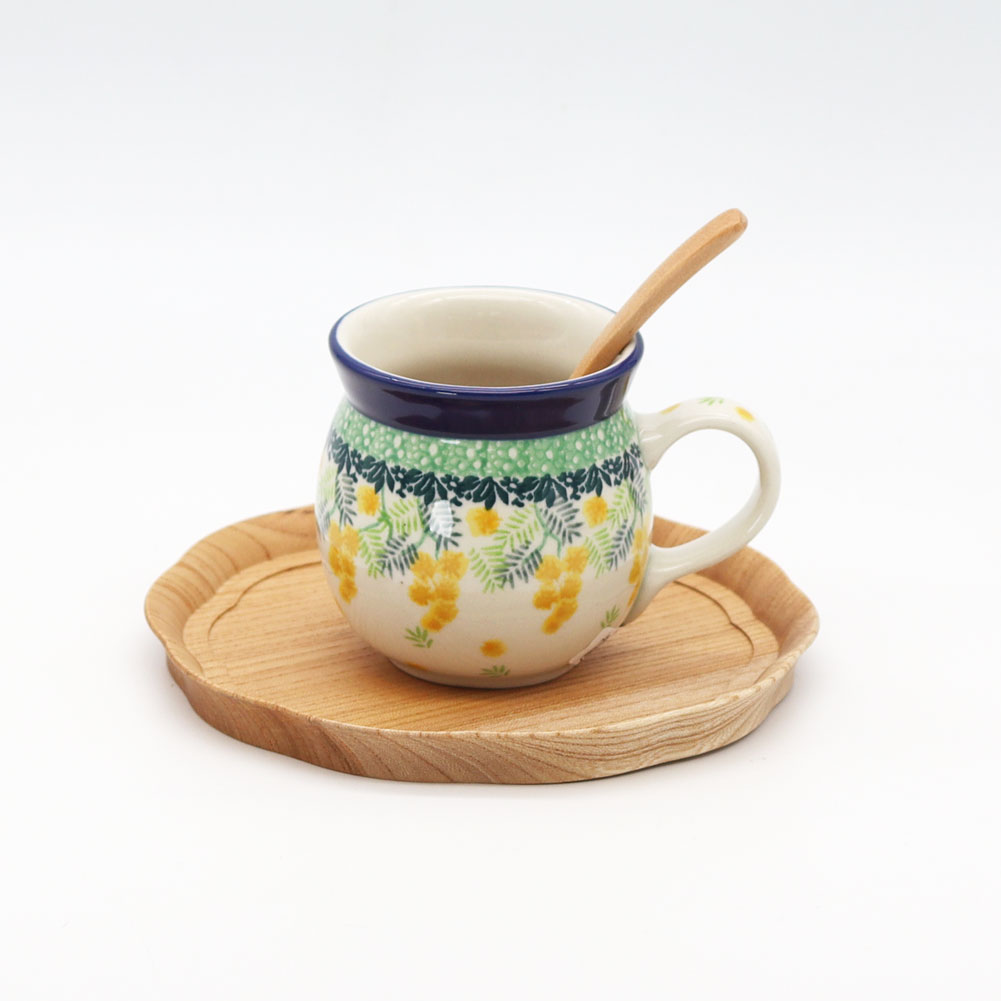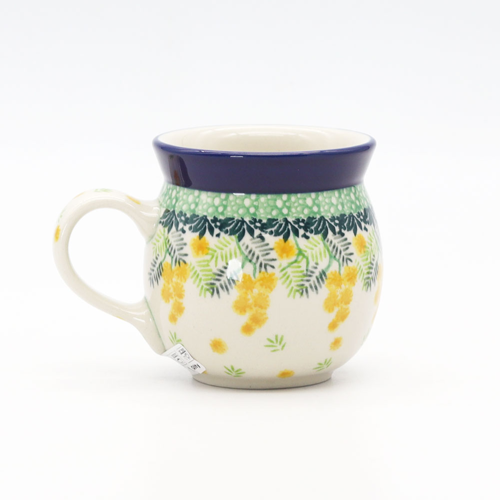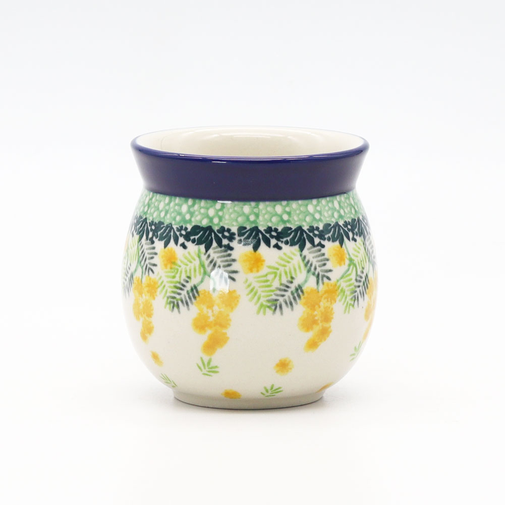 | 黄色いミモザがかわいい! 3265Xシリーズは、ミモザ柄がかわいいシリーズです。 ミモザの花は「感謝」や「友情」の象徴として愛されており、春の訪れを告げる花としても知られています。 器に描かれたミモザ柄は、鮮やかな黄色と繊細なグリーンの葉が美しく調和し、食卓に温かみと華やかさをもたらします。 手描きならではの柔らかいタッチが魅力で、眺めるだけで気分が明るくなるデザインですね。 マグは飲み物が飲みやすいように口は広がっており、その下は飲み物が冷めにくいように少しすぼまっています。 寒い地域ならではの、工夫とデザインを兼ね備えていますね。 |