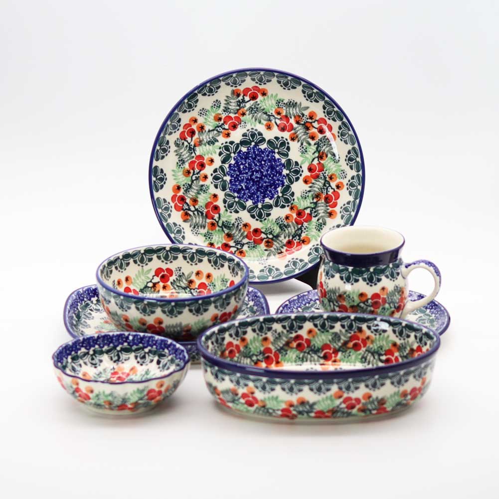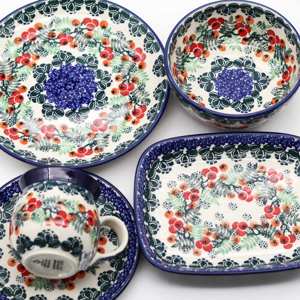 | ホリデーシーズンの演出にもオススメです! 赤い実と緑の葉がリズミカルに描かれ、冬の森を思わせるような、温かみのある雰囲気に仕上がっています。 ひとつひとつのモチーフが丁寧に配置されており、眺めるほどに心が穏やかにほどけていきます。 縁には藍色のクラシカルな模様が施され、全体をきりっと引き締めるアクセントに。 和洋どちらの食卓にも自然になじみ、普段使いはもちろん、季節のイベントにもぴったりです。 赤・緑・藍の配色が冬の空気に映え、キャンドルやリースとの相性も抜群。 温もりのあるホリデーシーズンの演出に、そっと華を添えてくれます。 季節を問わず、暮らしの中に彩りを添える、そんな一枚です。 16cmプレートは、ケーキやスイーツなどに使いやすいサイズになっています。 また、マグカップと合わせてカップソーサーとしても使えますよ |