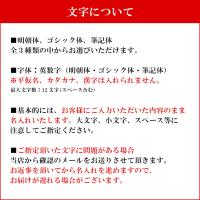 ■ご注文の際に、ご希望の書体をプルダウンよりお選び下さい。ご注文を進めて頂きますと【名入れ文字】の入力画面が出てきますので、そちらにご希望の文字をご記入下さい。ご指定頂いた文字に問題がある場合、文字の指定がない場合、当店から確認のメールをお送りさせて頂きます。お返事を頂いてから名入れを進めますので、お届けが遅れる場合がございます。必ずご記入をお願いします。
