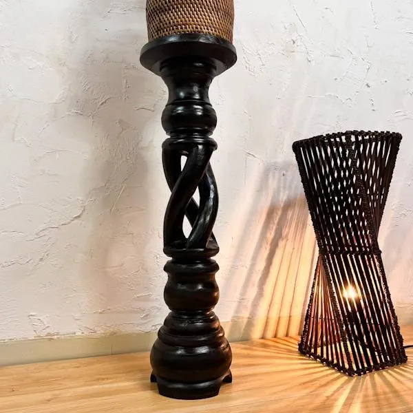 バリ島のトルネード彫刻花台(Mサイズ 高さ60cm)♪ ソファーサイドテーブル 玄関 リビング アンティーク調 インテリア おしゃれ ナチュラル カフェ リゾート
