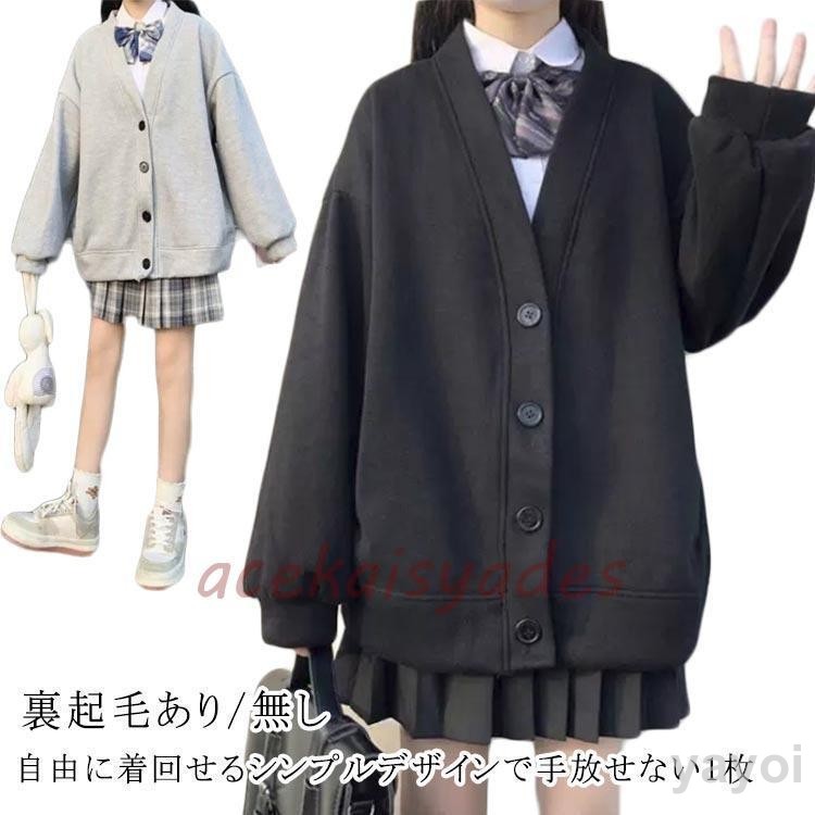 Vネック アウター スウェット 羽織り レディース 薄手&裏起毛 高校生 無地 学生服 中学生 スクールカーディガン 黒 女子 制服 秋冬 春 大きい