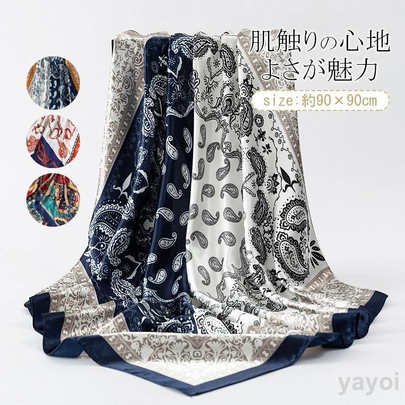 スカーフ 大判 シルクタッチ UVカット ストール マフラー 正方形 母の日 プレゼント ギフト レディース 90*90CM バッグスカーフ ネックスカーフ