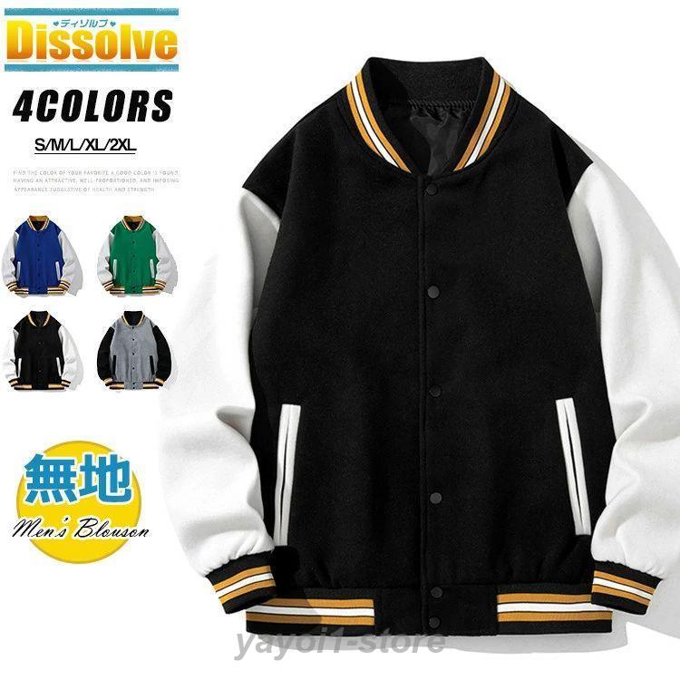 スタジャン 無地 メンズ ジャケット 野球服 薄手 重ね着風 春 ジャンパー カラー切替 アウター 通学 スポーツウェア 春服 秋 メンズファッション 団体