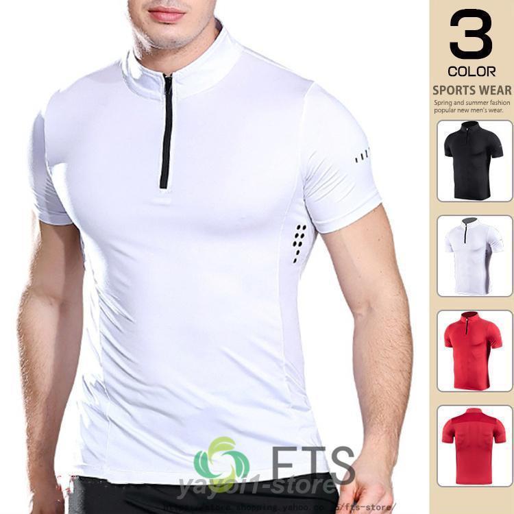 ハーフジップ Tシャツ メンズ 半袖 吸汗 速乾 筋トレ コンプレッションウェア 加圧シャツ 加圧インナー パジャマ トレーニング